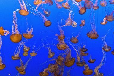 Keywords: jellyfish aquarium swimming floating marine aquatic nature tropical colorful creatures underwater