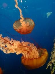 Keywords: jellyfish blue aquarium sea underwater ocean marine animal tropical aquatic exotic glowing creature swim tentacles orange