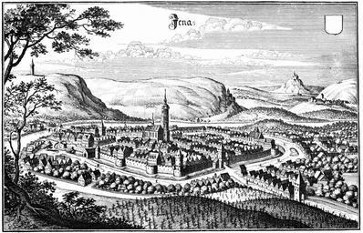 Keywords: Jena-1650-Merian.jpg Source Matthäus Merian Cityview Engravings of Topographia Superioris Saxoniae Thüringiae Misniae et Lusatiae Merian Jena in the 17th century