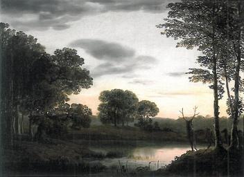 | Keywords: Jens Juel En Skovegn Den tidlige Morgen.png En Skovegn 'Den tidlige Morgen før Solens Opgang' - <br /> Johan Bülow støttede nogle af tidens kunstnere ved at købe deres værker og opbyggede efterhånden en betydelig samling Chr Molbech lavede en opregning ved et besøg hos Bülow 1813 - Url https //da wikisource org/wiki/Fragmenter_af_en_Dagbog_skreven_paa_en_Reise_i_Danmark_1813 Se side 91 på Wikisource <br />Beskrivelsen ved dødsboauktionen 1828 formodes at være Bülows I Forgrunden ved et stille Vand staar en Hjort Den tidlige Morgen inden Solen er opstaaet Oplysning i udstillingsbogen side 18 Early morning before sunrise s 1780 Oil on canvas cm 31 0 39 3 Institution Funen Art Museum object history Sold to Chr Jürgensen Thomsen at the auktion after Johan Bülow who died 1828 - Bought 1951 by Funen's Art Museum exhibition history credit line An Url http //museum odense dk/det-sker/det-sker/saerudstillinger/2010/sanderumgaards-romantiske-have/bog aspx exhibition was held 25-05-2010 - 26-09-2010 at Funen's Art Museum in relation to the reopening of the romantic garden at Sanderumgaard Odense Denmark after a restoration This drawing is depicted in the Url http //museum odense dk/det-sker/det-sker/saerudstillinger/2010/sanderumgaards-romantiske-have/bog aspx exhibition book page 18 accession number Billedet er skannet fra udstillingsbogen side 18 - Anne Christiansen Sanderumgaards Romantiske Have 2010 - Url http //museum odense dk/det-sker/det-sker/saerudstillinger/2010/sanderumgaards-romantiske-have/bog aspx Om udstillingsbogen Image scanned from the exhibition book page 18 - Anne Christiansen Sanderumgaards Romantiske Have 2010 - Url http //museum odense dk/det-sker/det-sker/saerudstillinger/2010/sanderumgaards-romantiske-have/bog aspx About the exhibition book An expired work of art PD-old-100 DEFAULTSORT Juel Jens; Landscape 1800 morning; Funen Art Museum Paintings by Jens Juel Paintings in Funen Art Museum Johan Bülow |