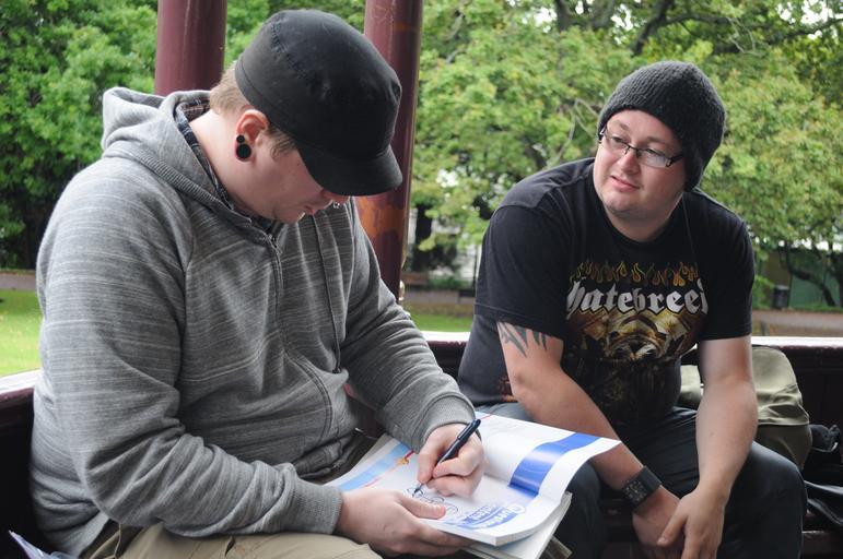 Keywords: outdoor Jeph Jacques is author of the webcomic Questionable Content. At a fan meetup at the gazebo in Albert Park in Auckland, New Zealand. CC0 waiver: To the extent possible under law, I waive all copyright and related or neighboring rights to this work. Jeph Jacques is author of the webcomic Questionable Content. At a fan meetup at the gazebo in Albert Park in Auckland, New Zealand. CC0 waiver: To the extent possible under law, I waive all copyright and related or neighboring rights to this work.