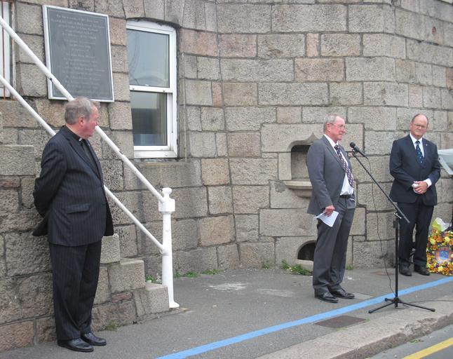 | Keywords: Jersey WWII 28 June 1940 bombing commemoration 2013 11.jpg 28 d'Juîn 2013 En mémouaithe d'la bombardéthie Allemande du 28 d'Juîn 1940 et des victînmes Saint Hélyi Jèrri 28 June 2013 Anniversary commemoration of the German bombardment of 28 June 1940 - and of the victims Saint Helier harbour Jersey own photo 2013-06-28 17 32 03 Man vyi ImageNote 1 326 46 607 763 3476 2757 2 On the evening of 28th June 1940 Heinkel Aircraft of the German Air Force attacked the St Helier Harbour in an attempt to test the defences of the Island this plaque was unveiled on 28th June 1990 in memory of Mr John Philip Mauger Mr Harold Frederick Hobbs Mr Robert Bunting Fallis Mr Godfray William Adolph Coleman Mr Leslie Charles Henry Bryan Mr Edward Henry Ferrand Mr William Charles Moody Mr Arthur William Parr who lost their lives as a result of this raid ImageNoteEnd 1 Commemoration of 28 June 1940 German attack against Jersey Memorial wreaths Stairs in Jersey Simon Crowcroft People of Jersey in 2013 John Nettles June 2013 in Jersey Albert Pier Jersey 2013 in Saint Helier Jersey Plaques in Saint Helier Jersey |