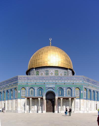 Keywords: Jerusalem Dome of the rock BW 6.JPG 31 46 39 06 N 35 14 7 56 E alt 758 56_source exif_heading en Dome of the Rock de Felsendom own Berthold Werner 2008-11-11 Photographs by User Berthold Werner/Israel Palestina Taken with Pentax K10D Exterior of the Dome of the Rock |