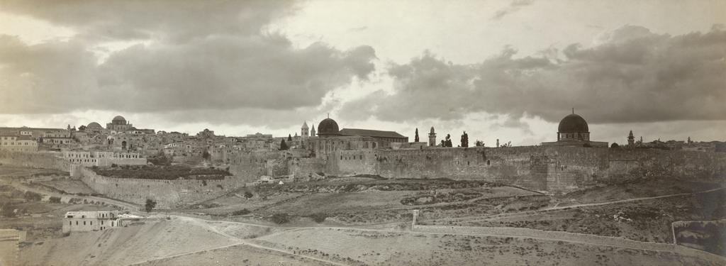 | Keywords: Jerusalem panorama early twentieth century2.jpg Assessments 1 Jerusalem 1 en View of Jerusalem from southeast showing city walls the Dome of the Rock and al-Aqsa mosque Information field Notes Medium 1 photographic print gelatin silver ; 21 x 51 cm 8 x 20 in Reproduction Number LC-DIG-ppmsca-18902 digital file from original item Rights Advisory No known restrictions on publication Call Number LOT 13892 no 4 item P P Repository Library of Congress Prints and Photographs Division Washington D C 20540 USA http //hdl loc gov/loc pnp/pp print Title devised by Library staff based on information for similar image LC-M32- P-4 Stamped on verso no 252 Accession number 2006 051 2 Forms part of Visual materials from the papers of John D Whiting Library of Congress html LOC-image ppmsca 18901 between 1900 1940 American Colony Jerusalem Photo Dept photographer Retouched picture Cropped Dirt artifacts and watermark removed Selective brightness adjustments Histogram adjusted Durova Jerusalem_panorama early twentieth century jpg PD-Matson Panoramic views from the Mount of Olives Historical images of Jerusalem Israel in the 20th century |