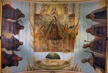 | Keywords: Jesuino do Monte Carmelo - Igreja do Carmo3.jpg Teto da Capela da Ordem Terceira do Carmo de São Paulo após do restauro descobrindo o medalhão central original de JesuÃno do Monte Carmelo antes oculto As partes em torno a imagem da Virgem e as nuvens são os remanescentes documentais da pintura de Pedro Alexandrino em final do século XIX contudo muito desfigurada por uma repintura nos anos 50 por um pintor desconhecido As figuras laterais são originais de JesuÃno do Monte Carmelo scan de Murayama Eduardo Tsutomu A Capela de Santa Teresa da Venerável Ordem Terceira do Carmo da Cidade de São Paulo e o Resgate da Pintura do padre JesuÃno do Monte Carmelo 18º Encontro da Associação Nacional de Pesquisadores em Artes Plásticas Transversalidades nas Artes Visuais “ 21 a 26/09/2009 - Salvador Bahia 1796-1798 Creator JesuÃno do Monte Carmelo PD-old-100 JesuÃno do Monte Carmelo Painted ceilings in Brazil Baroque paintings from Brazil Igreja da Ordem Terceira do Carmo São Paulo |
