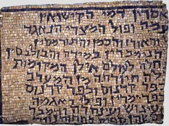 | Keywords: Jewish legal inscription from a synagogue - Google Art Project.jpg non-free frame 9096156 Unknown /collection/the-israel-museum-jerusalem/artwork/jewish-legal-inscription-from-a-synagogue-unknown/716550/ IAA 1974-2045 author /collection/the-israel-museum-jerusalem/ The Israel Museum Jerusalem 336006 http //www imj org il/ 1/23/2012 8 17 02 AM /collection/the-israel-museum-jerusalem/artwork/jewish-legal-inscription-from-a-synagogue-unknown/716550/ 500 6th century CE Stone True 716550 True 599 3/29/2012 7 14 14 PM 842045 http //www imj org il/imagine/galleries/archaeologyE asp http //www english imjnet org il/htmls/page_1686 aspx c0 15162 bsp 14946 Israel Museum Jerusalem Israel Antiquities Authority Synogogue floor 500 600 Rehov Beth Shean Valley 6th century CE False 1 34031413612565 Photo © The Israel Museum Jerusalem Object jewish-legal-inscription-from-a-synagogue-unknown Jewish legal inscription from a synagogue j Mevorah David H 330 cm W 440 cm Stone special url_id PwGcOOR0s1OaXw PD-old-100 Google Art Project works by unknown artist Google Art Project files requiring license verification Mosaics Inscriptions Jewish Ancient history Images from The Israel Museum Jerusalem |
