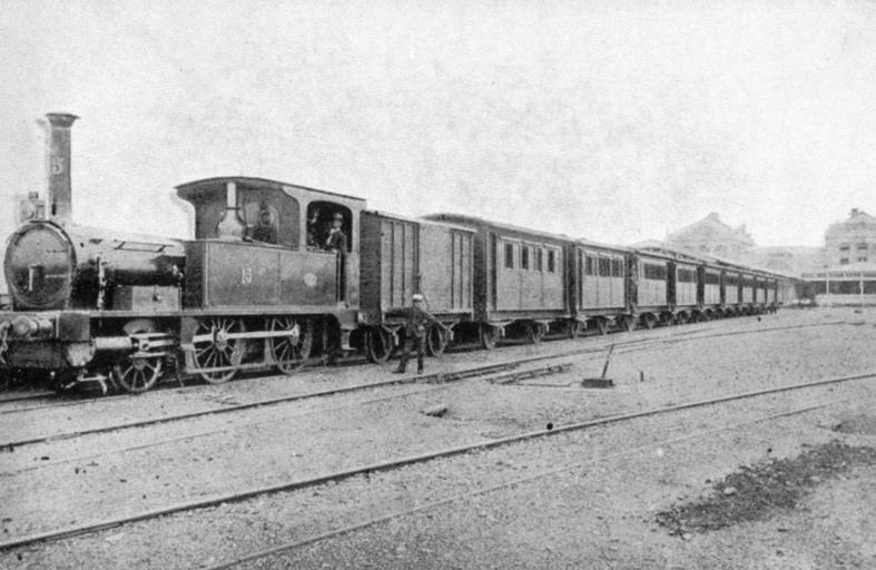 Keywords: JGR-160SLb.jpg en The mixed train pulled by Japan Government Railway type 160 steam locomotive at Shimbashi station in Tokyo ja 鉄道院160形蒸気機関車の牽引する列車(新橋駅<ref>小寺幹久 復刻 写 解説 機関車 歩の跡 復刻版 リトルジャパンモデルス 2002年6 1日 版 p140</ref>) en Rolling Stock 1872-1952 ja 車両の80年 Japanese National Railways ja 日 国 鉄道工 /Kone en October 1952 ja 1952年10 /2010年 en See below ja 下記参照 PD-Japan-oldphoto References reflist 160 steam locomotives Sharp Stewart and Company locomotives