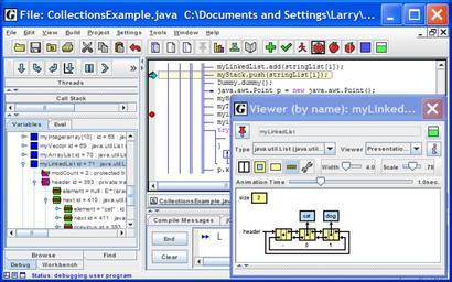 Keywords: JGRASP screenshot.png en jGRASP screenshot showing CSD and a linked list debugger viewer Own Labarowski 2009-04-23 Screenshots of software
