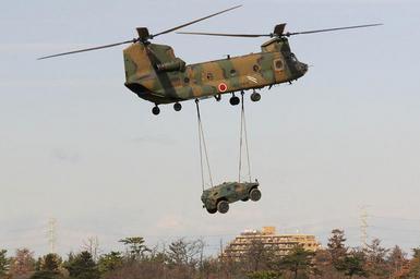 Keywords: JGSDF 1st Airborne Brigade 20080113(Narashino).JPG Kawasaki CH-47 Helihoisting of vehicles by CH-47 Chinook Helihoisting of automobiles Camp Narashino JSDF LAV 1st Airborne Brigade Japan