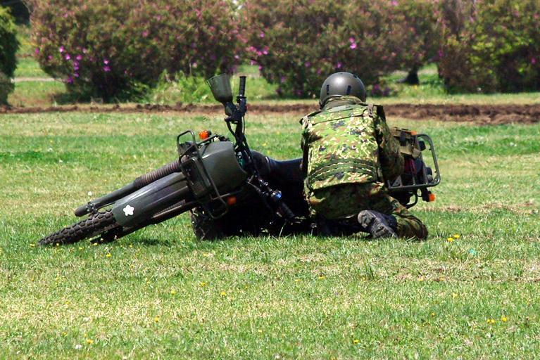 Keywords: JGSDF reconnaissance bicycle (Kawasaki KLX250) 20120429-01.JPG Kawasaki KLX JGSDF Cc-zero
