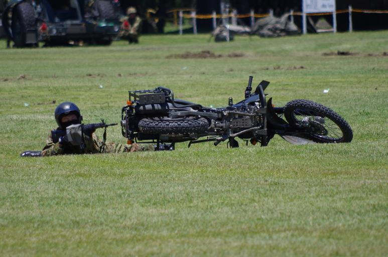 | Keywords: JGSDF reconnaissance bicycle (Kawasaki KLX250) 20140615-02.JPG JGSDF reconnaissance bicycle Kawasaki KLX250 Taken by Los688 in Camp Koga Japan at 15-Jun-2014 PD-self ja 陸上自衛隊 偵察用オートバイ(カワサキKLX250) 2014年6 15日 古河駐屯 で撮影 my own work 2014-06-15 Los688 PD-self Cc-zero Kawasaki KLX JGSDF |