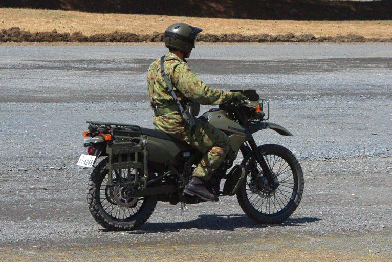 Keywords: JGSDF reconnaissance bicycle (Kawasaki KLX250) 20120408-02.JPG Kawasaki KLX JGSDF Cc-zero