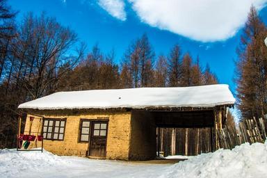 Keywords: jiapigou snow sesson house cabin winter sunshine white