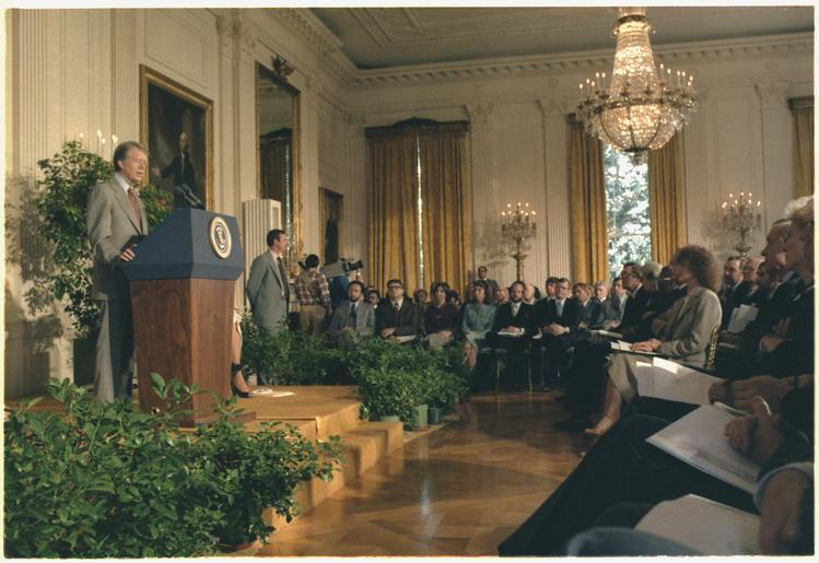 | Keywords: Jimmy Carter hosts a ceremony commemorating the 30th Anniversary of the Universal Declaration of Human Rights. - NARA - 182626.tif Scope and content General notes 182626 Local identifier President 1977-1981 Carter White House Staff Photographers 01/20/1977 - 01/20/1981 Jimmy Carter Library NLJC 441 Freedom Parkway Atlanta GA 30307-1498 1978-12-06 Record group Collection JC-WHSP Carter White House Photographs Collection 01/20/1977 - 01/22/1981 Record group ARC 1120 Carter White House Photographs Presidential compiled 01/20/1977 - 01/22/1981 Series ARC 173341 File unit Jimmy Carter - Human Rights ceremony 12/06/1978 - 12/06/1978 File unit ARC 182625 Variant control numbers NAIL Control Number NLC-WHSP-C-08616-12 yes Other versions NARA-cooperation PD-USGov Universal Declaration of Human Rights Jimmy Carter |