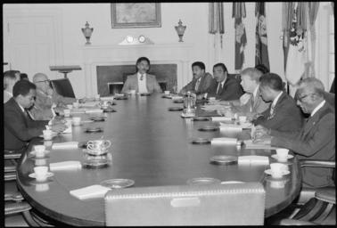 | Keywords: Jimmy Carter meeting with congressional black caucus - NARA - 181563.tif Scope and content General notes 181563 Local identifier President 1977-1981 Carter White House Staff Photographers 01/20/1977 - 01/20/1981 Jimmy Carter Library NLJC 441 Freedom Parkway Atlanta GA 30307-1498 1978-09-26 Record group Collection JC-WHSP Carter White House Photographs Collection 01/20/1977 - 01/22/1981 Record group ARC 1120 Carter White House Photographs Presidential compiled 01/20/1977 - 01/22/1981 Series ARC 173341 File unit President Carter mtg with Congr Black Caucus 09/26/1978 - 09/26/1978 File unit ARC 181562 Variant control numbers NAIL Control Number NLC-WHSP-C-07610-7 yes Other versions NARA-cooperation PD-USGov United States Congress Jimmy Carter African American politicians |