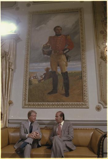 | Keywords: Jimmy Carter visits with President Carlos Perez - NARA - 178564.tif Scope and content General notes 178564 Local identifier President 1977-1981 Carter White House Staff Photographers 01/20/1977 - 01/20/1981 Jimmy Carter Library NLJC 441 Freedom Parkway Atlanta GA 30307-1498 1978-03-29 Record group Collection JC-WHSP Carter White House Photographs Collection 01/20/1977 - 01/22/1981 Record group ARC 1120 Carter White House Photographs Presidential compiled 01/20/1977 - 01/22/1981 Series ARC 173341 File unit Jimmy Carter Rosalynn Carter Amy Carter - Caracas Venezuela 03/29/1978 - 03/29/1978 File unit ARC 178563 Variant control numbers NAIL Control Number NLC-WHSP-C-04909-29 yes Other versions NARA-cooperation PD-USGov Carlos Andrés Pérez Relations of the United States and Venezuela Rosalynn and Jimmy Carter |