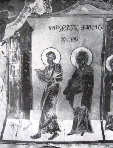 | Keywords: Joachim and Anna. Bertubani fresco.jpg en Joachim and Anna A fresco from Bertubani century 13 ამირა აშვილი შ ქართული ხელ ვ ების ისტ რია Tbilisi 1971 author PD-Art Bertubani monastery Frescos in Georgia Georgia in the 13th century Saint Joachim Saint Anne Asomtavruli frescos |