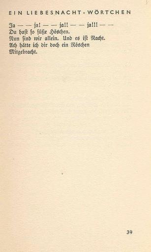 | Keywords: Joachim Ringelnatz - Gedichte dreier Jahre 039.jpg Scans of the book Gedichte dreier Jahre by Joachim Ringelnatz 1883 - 1934 http //www ub uni-bielefeld de/diglib/2006/ringeln_dreierjahre/ 1932 Creator Joachim Ringelnatz PD-old Ringelnatz - Gedichte dreier Jahre |