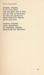 | Keywords: Joachim Ringelnatz - Gedichte dreier Jahre 047.jpg Scans of the book Gedichte dreier Jahre by Joachim Ringelnatz 1883 - 1934 http //www ub uni-bielefeld de/diglib/2006/ringeln_dreierjahre/ 1932 Creator Joachim Ringelnatz PD-old Ringelnatz - Gedichte dreier Jahre |