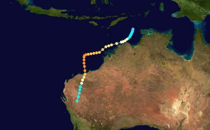 | Keywords: Joan 1975 track.png Track map of Severe Tropical Cyclone Joan of the 1975 “76 Australian region cyclone season The points show the location of the storm at 6-hour intervals The colour represents the storm's maximum sustained wind speeds as classified in the Saffir-Simpson Hurricane Scale see below and the shape of the data points represent the nature of the storm according to the legend below User Nilfanion/Tc/T Created by Cyclonebiskit using Wikipedia WikiProject Tropical cyclones/Tracks The background image is from NASA Tracking data is from the http //www aoml noaa gov/hrd/hurdat/metadata html National Hurricane Center 2011-01-18 Cyclonebiskit cc-by-sa-3 0 GFDL Australian region tropical cyclone tracks |