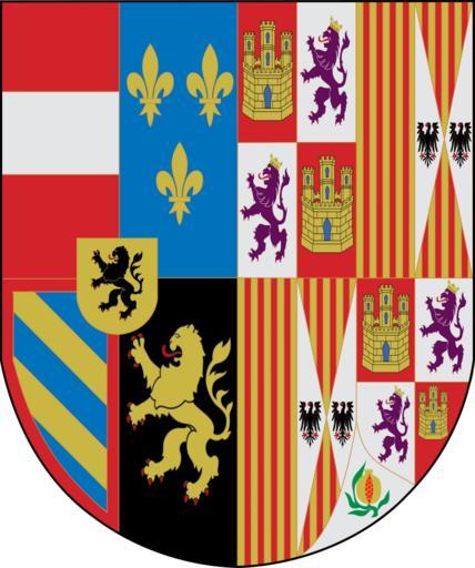 | Keywords: Joanne of Castille and Philippe of Habsbourg escutcheon.svg There is a odd grey film over the image the white is not properly white just like the other colours please improve SVG es Grandes armas de es Juana I de Trastamara reina de Castilla archiduquesa de Austria y duquesa de Borgoña Partido contracuaterlado y entado Cuartelado con escusón en el primer cuartel blasón de Austria moderna en campo de gules faja de plata; en el segundo correspondiente a Borgoña moderna ducado de Dijon campo de azur con tres flores de lis de oro puestas dos y una; en el tercero perteneciente a Borgoña antigua Franco Condado Besançon bandado de oro y azur en órdenes de 3 y 3 con bordura componada de gules; en el cuarto en campo de sable león rampante de oro y linguado correspondiente a Bravante ducado de Bruselas Amberes Lovaina y Breda y finalmente un escusón que presenta en campo dorado león rampante de sable correspondiente a Flandes condado de Brujas y Gante El primer cuartel de gules y oro que representa el reino de Castilla muestra un castillo dorado almenado; en el segundo de plata un león rampante de sable linguado y coronado de oro representa el reino de León El reino de Castilla y León forma un escudo cuartelado en cruz; seguidamente el de Aragón se denomina partido y se compone según se ve en el tercer cuartel de cuatro palos de gules sobre campo dorado referido a la Corona de Aragón; en el cuarto en campo de plata cuartelado en sotuer 1º y 4º de Aragón 2º y 3º en campo de plata águila exployada de sable correspondiente al reino de Sicilia; en la mitad inferior se repite este de los escudos pero invertido; por último entado de plata una granada al natural rajada de gules tallada y hojada de dos hojas de sinople representa el reino de Granada fuente http //www moleiro com/miniatura v php p 864/es Breviario de Isabel la Católica The British Library Londres Own 2007-11-29 SanchoPanzaXXI GFDL cc-by-sa-all Joanna of Castile Coats of arms of Philip I of Castille 1496-1506 SVG coats of arms of Spain Joanne of Castille Crowned lion purpure of León in heraldry Marshalled coat of arms of the Catholic Monarchs 1492 |