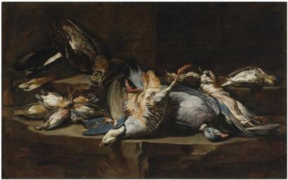 | Keywords: Joannes Hermans - Still life of game birds resting on a rock ledge.PNG Artwork creator Joannes Hermans en Still life of game birds resting on a rock ledge 1644 - 1675 http //www sothebys com/en/auctions/ecatalogue/2010/old-master-paintings-n08645/lot 45 html oil canvas cm 62 2 98 4 Sold at Sotheby's on 3 June 2010 in New York lot 45 PD-old-100 Joannes Hermans 17th-century still life paintings of dead game by Joannes Hermans | ||||