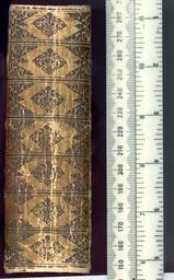 | Keywords: Joannis Barclaii Argenis, figuris aeneis adillustrata, suffixo clave, hoc est nominum propriorum explicatione, atque index locupletissimo. (Noribergae - impensis B.W.M. Endteri consortium, e - Spine (RB23a28487).jpg Style Peasant floral coloured vellum; Caption Spine; Colour White / cream; Edge Unspecified exhibition history Decorative Technique Tooled in blind Tooled in alloy frequently gold and silver zwischen gold ; Cover Material Parchment For details see upper cover object history Text 1740; Unspecified; Unspecified object type Cc-zero place of creation Binding Germany place of discovery Unspecified British Library image http //www bl uk/catalogues/bookbindings/LargeImage aspx RecordId 020-000011478 ImageId ImageId 45344 Copyright BL Joannis Barclaii Argenis figuris aeneis adillustrata suffixo clave hoc est nominum propriorum explicatione atque index locupletissimo Noribergae impensis B W M Endteri consortium et vid B Jul Arnold Engelbrechti ca 1740 Uploaded with GWToolset Joannis Barclaii Argenis figuris aeneis adillustrata suffixo clave hoc est nominum propriorum explicatione atque index locupletissimo Noribergae impensis B W M Endteri consortium e - Spine RB23a28487 http //www webarchive org uk/bldatasets/bindings/12409_3 jpg Bookbinding 18th-century bookbinding British Library Bookbindings |