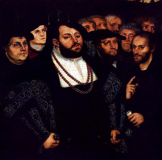 | Keywords: Johann Friedrich and Luther.jpg after Johann Friedrich Kurfürst von Sachsen von Sachsen und die Wittenberger Reformatoren en detail of a painting after Lucas Cranach the Younger in Plymouth City Museum ca 1630 1640 oil canvas cm 142 134 Toledo Museum of Art http //www bbc co uk/arts/yourpaintings/paintings/elector-johann-friederich-of-saxony-and-the-reformers BBC your paintings<br>http //www artfund org/what-we-do/art-weve-helped-buy/artwork/11709/portrait-of-johann-friedrich-the-elector-of-saxony-and-the-reformers-unknown Art Fund</br> http //classes toledomuseum org 8080/emuseum/view/objects/asitem/search 0040/0/invno-asc t state flow 026be638-3ecc-4815-b8b1-9562262c1ce5 Toledo Museum object history ProvenanceEvent 1954 loan Plymouth City Museum and Art Gallery Clarendon Collection ProvenanceEvent 2011 sale Plymouth City Museum and Art Gallery Clarendon Collection Sotheby's credit line purchased with the assistance of the National Art Collections Fund 2011 accession number US_TMA_1926-55 en Cranach the Younger married the daughter of Gregor Brück 1541 After her death 1550 he married the niece of Phillip Melanchthon Cover of The German Reformation by R W Scribner and C Scott Dixon 2nd ed New York Palgrave Macmillan 2003 file James Steakley <gallery> After Lucas Cranach the Younger 17th cent ˜Portrait of Johann Friederich of Saxony and the Reformers ™ Plymouth City Museum and Art Gallery jpg after Lucas Cranach the Younger Plymouth City Museum Lucas Cranach the Younger - Martin Luther and the Wittenberg Reformers - Google Art Project jpg Lucas Cranach the Younger Toledo Museum of Art Ohio </gallery> PD-old-100 DEFAULTSORT Cranach Lucas 2; Johann Friedrich Kurfürst von Sachsen und die Reformer; Plymouth City Museum Paintings of Martin Luther Philipp Melanchthon by Lucas Cranach the Younger Johann Friedrich Sachsen by Lucas Cranach I Portrait paintings by Lucas Cranach the Younger Reformers Gregor Brück Georg Spalatin ImageNote 1 326 244 136 195 1556 1539 2 Georg Spalatin ImageNoteEnd 1 ImageNote 2 77 319 208 280 1556 1539 2 Martin Luther ImageNoteEnd 2 Category Plymouth City Museum and Art Gallery ImageNoteEnd 5 ImageNote 6 187 156 104 109 891 944 2 Martin Luther ImageNoteEnd 6 ImageNote 7 349 115 126 159 891 944 2 Johann Friedrich I ImageNoteEnd 7 ImageNote 8 611 162 91 124 891 944 2 Philipp Melanchthon ImageNoteEnd 8 ImageNote 9 275 121 74 120 891 944 2 Georg Spalatin ImageNoteEnd 9 ImageNote 10 486 154 131 135 891 944 2 Gregor Brück ImageNoteEnd 10 ImageNote 11 562 234 241 334 1556 1539 2 Johann Friedrich I ImageNoteEnd 11 ImageNote 12 896 313 288 257 1556 1539 2 Gregor Brück ImageNoteEnd 12 ImageNote 13 1263 295 218 316 1556 1539 2 Philipp Melanchthon ImageNoteEnd 13 |