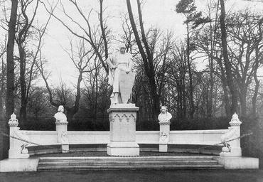 | Keywords: Johann II Siegesallee group6.JPG Denkmalgruppe 6 in der ehemaligen Berliner Siegesallee Zentrales Standbild Markgraf Mitregent Johann II ca 1237 “1281 Sohn von Johann I Die Nebenfiguren zeigen Graf Günther I von Lindow und Ruppin “1284 links und Konrad Belitz auch Konrad von Beelitz Ersterwähnung 1288 “1308 Fernhändler Kaufmann Bildhauer Reinhold Felderhoff Enthüllung 14 November 1900 Während die Aufnahme des letzten und für die märkische Geschichte völlig unbedeutenden Askaniers Heinrich II das Kind in die Siegesallee umstritten und letztlich lediglich der Tatsache geschuldet war dass die Symmetrie mit je 16 Gruppen zu beiden Seiten des Monumentalboulevards gewahrt werden sollte liegen über die Gründe die zur Aufnahme des gleichfalls eher unbedeutenden Mitregenten Johann II führten keine Angaben vor Der Bildhauer Reinhold Felderhoff hatte bei der Gestaltung der Statue freie Hand denn Bildvorlagen gab es nicht Das einzige figürliche Merkmal aus der Brandenburgischen Fürstenchronik die Johann II als klein von Statur tüchtig und kräftig charakterisierte konnte Felderhoff wegen der vorgeschrieben Einheitshöhe der Statuen nicht umsetzen Die Gestaltung Felderhoffs fiel völlig aus dem Rahmen indem er gegen die gängige historisierende Kunst eine fast moderne großflächige typisierende Form wählte Er verzichtete als einziger Siegesallee-Bildhauer auf eine Individualisierung des Standbilds und schuf eine typisierte ruhig und ernst zu Boden blickende Kriegerfigur Die Figur zeigt Johann II gestützt auf ein großes Schild mit dem Wappen des Hauses Ballenstedt “ Esico von Ballenstedt gilt als Stammvater des Geschlechts der Askanier Monument group No 6 in the former Siegesallee in Berlin The central monument commemorates Margrave Coregent of Brandenburg Johann II ca 1237 “1281 son of Margrave Johann I The bust on the left commemorates Count Günther I of Lindow and Ruppin “1284 ; the bust on the right the merchant Konrad Belitz “1308 Sculptor Reinhold Felderhoff The sculpture was unveiled on 14 November 1900 While the inclusion in the Siegesallee of the last Ascanian ruler Henry II the Child who was of virtually no importance for the history of Brandenburg was controversial and ultimately based solely on the need to maintain symmetry with 16 sculptural groups on each side of the monumental boulevard we have no information about the considerations that led to the inclusion of the Coregent Johann II who was likewise rather insignificant The sculptor Felderhoff had a free hand since no images of the ruler were preserved The only physical characterization of Johann II in the chronicle of Brandenburg's rulers described him as small in stature energetic and powerful but this could not be taken into consideration because the statues were required to have a uniform height Felderhoff broke with the prevailing pattern by virtue of eschewing the customary historicizing approach and choosing an almost modern flat-featured typifying form He was the only Siegesallee sculptor who dispensed with individualizing the figure instead creating a prototypical warrior who gazes down with a calm serious expression The sculpture shows Johann II leaning on a large shield with the coat of arms of the house of Ballenstedt since Esico von Ballenstedt is regarded as the founder of the Ascanian dynasty Uta Lehnert Der Kaiser und die Siegesallee Réclame Royale Dietrich Reimer Verlag Berlin 1998 ISBN 3-496-01189-0 page 116 1900 Reinhold Felderhoff sculptor PD-old Siegesallee 06 Johann II Ruppiner Land |