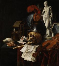 | Keywords: Johannes Fris Vanitas-Stilleben.jpg Vanitas-Stilleben mit Schädel und Spielkarten oil on canvas 67 4 x 61 cm http //www hampel-auctions com/ by 1672 creator Jan Fris PD-old-100 Images from Hampel Auctions Jan Fris Paintings of Vanitas Playing cards in art Paintings of sculptures Violins in paintings |