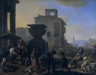 | Keywords: Johannes Lingelbach - Italiaans marktplein met een kiezentrekker.jpg Artwork Q17319949 Creator Johannes Lingelbach LangSwitch Marketplace in an Italian town with an itinerant toothpuller Italiaans marktplein met een kiezentrekker 1651 oil on canvas cm 68 5 86 Institution Rijksmuseum Depot Object history ProvenanceEvent 1870 bequest LangSwitch das the au het Rijksmuseum Amsterdam L Dupper Wzn Dordrecht SK-A-226 J lingelbach Aº 1651 signature and date bottom left www rijksmuseum nl http //www rijksmuseum nl/ lang en Home https //www rijksmuseum nl/collectie/SK-A-226 Info https //www rijksmuseum nl/assetimage2 jsp id SK-A-226 Pic SK-A-226 4227 PD-old-100 Paintings by Johannes Lingelbach in the Rijksmuseum Amsterdam 1651 Johannes Lingelbach 1651 1651 paintings Paintings of markets Dentists in art Files by User Ophelia2 1650s paintings in the Netherlands 17th-century oil on canvas paintings in the Netherlands |