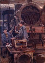 | Keywords: Johannes Martini Frühstück in der Lokomotivwerkstätte 1891.jpg Artwork Creator Johannes Martini 1891 Oil on canvas cm 70 50 object history exhibition history credit line accession number place of creation http //www galerie-bernd-duerr de/ Trains in art Breakfast in art Johannes Martini PD-old-auto 1935 |