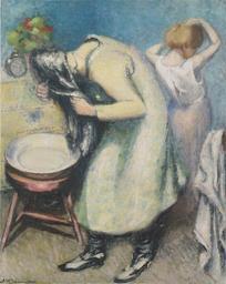 | Keywords: Johannessen - Haarwäsche 1920.jpeg Artwork creator Aksel Waldemar Johannessen 1920 oil canvas cm 80 63 Private collection Oslo object history credit line accession number repro from art book Author died more than 70 years ago - public domain PD-old 1920s way of life in painting Paintings by Aksel Waldemar Johannessen Hair care in art Hair washing 20th-century oil on canvas paintings in Norway Genre paintings in Norway 1920 paintings in Norway 20th-century paintings in private collections |