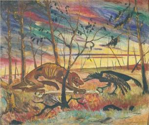 | Keywords: Johannessen - Hund und Rabe - ca 1918.jpeg Artwork creator Aksel Waldemar Johannessen ca 1918 oil canvas cm 75 89 Private collection Oslo object history credit line accession number repro from art book Author died more than 70 years ago - public domain PD-old Paintings by Aksel Waldemar Johannessen Ravens in art 20th-century oil on canvas paintings in Norway Figurative paintings in Norway Figurative paintings 20th-century paintings of dogs 1910s paintings in Norway 20th-century paintings in private collections |