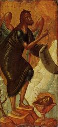 | Keywords: John the Angel of Desert, circle of Michael Damaskenos (16th c., Pushkin museum).jpg Иоанн П едтеча - ангел пустыни ихаил Дамаскин к уг Конец XVI века К ит де ево доска составная темпе а позолота 85 5х39 5 см Г ИИ Ж-4314 Рестав и ована в 1990 - 1991 гг в масте ской Госуда ственного музея Изоб азительных Искусств им А С Пушкина естав ато С Ге асимов Доска составная из двух частей шпонки Доска значительно об езана сп ава и слева часть изоб ажения ут ачена Ут аты левкаса и к асочного слоя местами поновления Г афья нимбы ци ованы адпись на свитке Покайтесь ибо п иблизилось Ца ствие ебесное ф 3 2 Иконог афическая сп авка Иконог афический тип к ылатого Иоанна П едтечи известен с палеологовской эпохи Данный извод получил ши окое асп ост анение в к итской иконописи благода я Ангелосу Изоб ажение вписано в узкое поле доски такая композиция также восходит к школе Ангелоса Стилистическая сп авка Изящный исунок х анит т адиции XV в Г афья местами не совпадает с исунком В личном письме используются азные п иемы Аскетический лик стоящего Иоанна выполнен в иконописной мане е с очень темной ко ичневой ка нацией темными ох ами кинова ными акцентами Заметно подче кнуты скулы Движки светов комбини уются с лишь слегка намеченной светотенью Голова в чаше написана иначе Пове х ко ичневой ка нации п оложены ме твенно оливковые ох ы и плавные света Иконописные п иемы сочетаются с западной нату алистичностью Почти по т етный лик Иоанна искажен сме тельной г имасой Итальянские влияния очевидны и в пе едаче го ок в кото ых также стилизуются п иемы школы Ангелоса В коло ите га монично сочетаются темно-оливковый плащ светло-синяя милоть би юзовые к ылья и светлые го ки Сочетание иконописной т адиции и знание итальянского искусства о иентация на школу Ангелоса композиция свобода т актовки объемов и го ок а также ко ичневая ка нация коло ит близки к угу п оизведений ихаила Дамаскиноса См иконы этого масте а Иоанн П едтеча из музея Закинтоса и Богомате ь Купина Однако стиль данной иконы несколько суховат Возможно икона п инадлежит школе ихаила Дамаскиноса http //lib pstgu ru/icons/index2 php option com_content view article id 1377347903 1377347903 catid 4 2009-11-26-12-53-12 Itemid 6 pageres 1 File source<br>http //www arts-museum ru/data/fonds/europe_and_america/j/2001_3000/4314_damaskin_ioann_baptist/index php sea_val D0 BF D1 80 D0 B5 D0 B4 D1 82 D0 B5 D1 87 D0 B0 Official museum page Конец 16 века ихаил Дамаскин к уг Icons in the Pushkin Museum Files uploaded by Shakko from various sources John the Angel of Desert 1590s Michael Damaskenos Angelus icon painter PD-old |