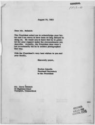 | Keywords: John F. Kennedy and Hats - NARA - 194136.tif Scope and content Letter concerning the President wearing a hat General notes 194136 Local identifier President 1961-1963 Kennedy Office of the President 01/20/1961 - 11/22/1963 John F Kennedy Library NLJFK Columbia Point Boston MA 02125-3398 1963-08-19 Record group Collection JFK-WHCF Papers of President Kennedy White House Central Files 01/20/1961 - 11/22/1963 Record group ARC 1176 Papers of President Kennedy White House Central Files White House Subject File compiled 01/20/1961 - 11/22/1963 Series ARC 194123 File unit Papers of President Kennedy White House Central Files White House Subject Files President 01/20/1961 - 11/22/1963 File unit ARC 194135 Variant control numbers NAIL Control Number NLK-WHCF-SBJCTFL-PP1310GWEARAPP-LTRREJFKHAT yes Other versions NARA-cooperation PD-USGov 1963 letters Documents in English Documents related to John F Kennedy |