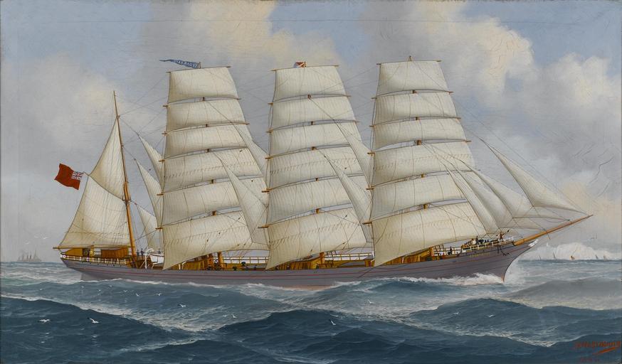 | View Original: | John_Henry_Mohrmann_-_The_four-masted_barque_'Cedarbank'_at_sea_under_full_sail_(1896).jpg (3398x1990) | |||