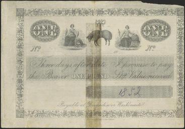 | Keywords: text writing monochrome photo border Bank or company's promissory note with ornate border incorporating John Jones' name and places where the company did business. At the top centre is a hanging sheep, flanked by two allegorical seated female figures, one with ears of grain and a cornucopia and one with a spindle and beehive. Quantity: 1 b&w art print(s) on promissory note. Physical Description: Engraving on paper note, 125 x 188 mm. Provenance: Donated by Mr G C D'Arcy Biss in 1975. Fergusson and Mitchell (Firm). John Jones (Dunedin Waikouaiti, New Zealand) :Three days after date, I promise to pay the bearer ONE POUND stg value received. Payable at Dunedin or Waikouaiti. Ferguson & Mitchell Fngs, 59 Collins St, Melbourne. [Promissory note]. 1852.. Ref: Eph-A-BANK-1852-01. Alexander Turnbull Library, Wellington, New Zealand. natlib.govt.nz/records/22681267 Bank or company's promissory note with ornate border incorporating John Jones' name and places where the company did business. At the top centre is a hanging sheep, flanked by two allegorical seated female figures, one with ears of grain and a cornucopia and one with a spindle and beehive. Quantity: 1 b&w art print(s) on promissory note. Physical Description: Engraving on paper note, 125 x 188 mm. Provenance: Donated by Mr G C D'Arcy Biss in 1975. Fergusson and Mitchell (Firm). John Jones (Dunedin Waikouaiti, New Zealand) :Three days after date, I promise to pay the bearer ONE POUND stg value received. Payable at Dunedin or Waikouaiti. Ferguson & Mitchell Fngs, 59 Collins St, Melbourne. [Promissory note]. 1852.. Ref: Eph-A-BANK-1852-01. Alexander Turnbull Library, Wellington, New Zealand. natlib.govt.nz/records/22681267 |