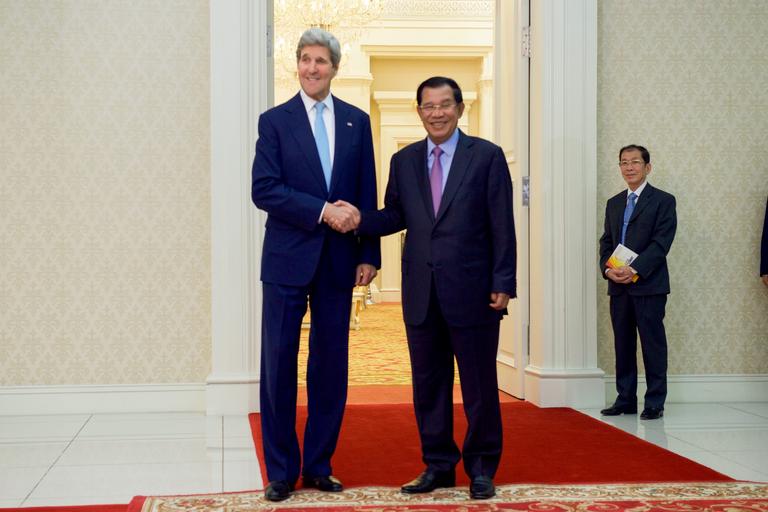 | Keywords: John Kerry meets with Cambodian Prime Minister Hun Sen.jpg en U S Secretary of State John Kerry poses for photographers with Cambodian Prime Minister Hun Sen before a bilateral meeting on January 26 2016 at the Peace Palace in Phnom Penh Cambodia 2016-01-25 22 28 40 https //www flickr com/photos/statephotos/24251464529/ Secretary Kerry Poses for a Photo With Prime Minister Hun Sen State Department photo other versions PD-USGov John Kerry in January 2016 Hun Sen Foreign relations of the United States People of Phnom Penh International relations of Cambodia |