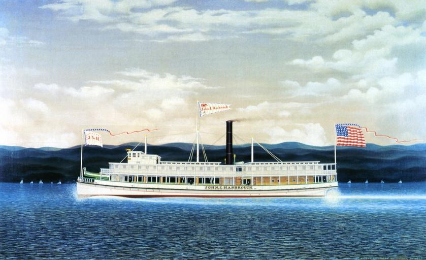 Keywords: John L. Hasbrouck (oil by Bard).jpg en John L Hasbrouck Hudson River steamboat oil on canvas by James Bard http //www the-athenaeum org/ The Athenaeum org Creator James Bard 1865 PD-old-100 Original in the Museum of American Folk Art New York Reproduced in Mariner's Museum and Peluso Anthony J Jr The Bard Brothers -- Painting America under Steam and Sail Abrams New York 1997 ISBN 0-8109-1240-6 James Bard 1861-1870 works John L Hasbrouck ship 1864 American Folk Art Museum Images from the-athenaeum org |