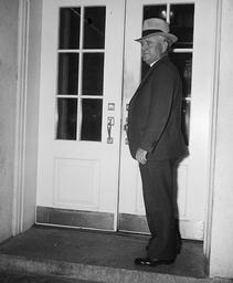 | Keywords: John Raymond McCarl - Comptroller General of the United States on WH visit - 1935.jpg en John Raymond McCarl Comptroller General of the United States visits the White House to see President Franklin D Roosevelt on October 25 1935 McCarl was the first official to visit the president after his vacation http //www loc gov/pictures/item/hec2013009601/ Harris Ewing 1935-10-25 John Raymond McCarl White House in 1935 PD-Harris-Ewing | ||||
