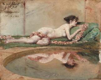 | Keywords: John Reinhard Weguelin – Reflection (1885).jpg Artwork en A nude woman reclines on cushions before a pool of water She plays with a garland of red and pink flowers 1885 http //www christies com/lotfinderimages/d38671/d3867185x jpg Oil on canvas in 8 10 unknown object history exhibition history credit line accession number PD-old-auto-1923 1927 John Reinhard Weguelin 19th-century paintings location missing 1885 oil on canvas paintings 19th-century oil paintings of recumbent women at full length Paintings of nude recumbent women on the ground outdoors Uploaded with UploadWizard Water reflections in art |