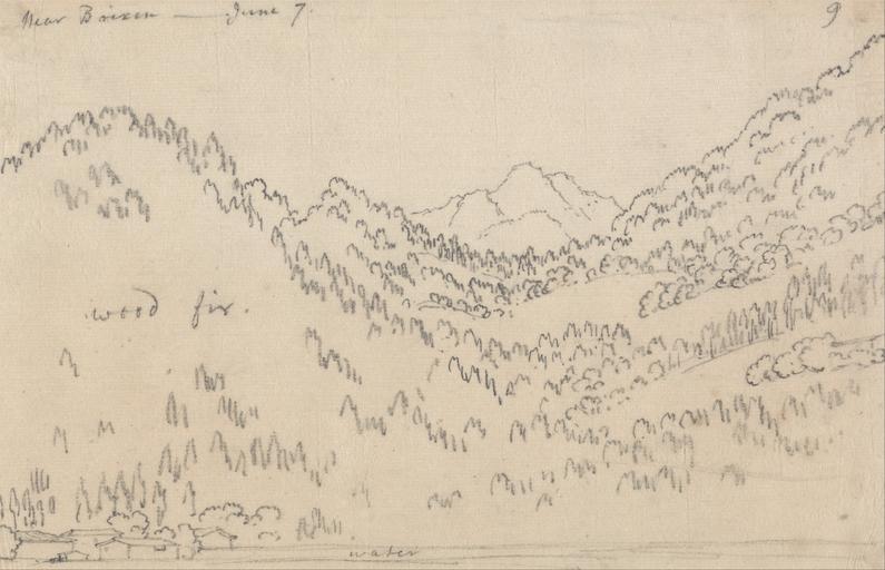 | Keywords: John Robert Cozens - Near Brixen, June 7 - Google Art Project (2368678).jpg Inscribed in graphite upper left Near Brixen - June 7 ; in graphite upper right 9 ; in graphite center left wood fir in graphite lower left 202 ; in graphite lower center water Inscription _Signed_and_Dated not signed Not on View Graphite on thin slightly textured cream laid paper mountains hills trees buildings landscape special url_id sQF4krOgZ1KwPQ PD-old-100-1923 1799 Italy in art by John Robert Cozens Google Art Project works by John Robert Cozens |