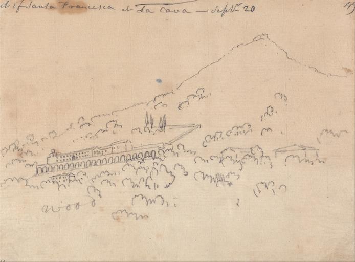 | Keywords: John Robert Cozens - Santa Francesca at La Cava, September 20 - Google Art Project.jpg Inscribed in graphite upper left to upper center < >ent of Santa Francesca at La Cava - Septr-20 ; in graphite upper right 49 ; in graphite lower left wood ; in graphite lower left 148 Inscription _Signed_and_Dated not signed Not on View Graphite on thin slightly textured cream laid paper arches ruins hills trees buildings landscape special url_id 7gGdVLiUlSKYtw PD-old-100-1923 1799 Campania in art by John Robert Cozens Google Art Project works by John Robert Cozens Cava de' Tirreni in art |