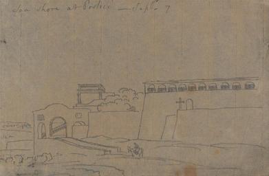 | Keywords: John Robert Cozens - Sea Shore at Portici, September 7 - Google Art Project.jpg Inscribed in graphite upper left Sea Shore at Portici - Septr- 7 ; in graphite lower left sea ; in graphite lower left 120 Inscription _Signed_and_Dated not signed Not on View Graphite and varnish on thin slightly textured cream laid paper architectural subject arches walls gates shore landform coast trees buildings landscape special url_id iAEmnmYn7Zh-Nw PD-old-100-1923 1799 Portici by J R Cozens Google Art Project works by John Robert Cozens |