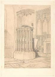 | Keywords: John Sell Cotman - Pulpit in South Burlingham Church, Norfolk - Google Art Project.jpg Inscribed in graphite lower right 2427 J S Cotman 1816 ; in graphtie lower right Pulpit at Burlingham; in graphite verso Rev J Bulwer S D K 804 Inscription _Marks Collector's mark RIBA blind embossed stamp Inscription _Signed_and_Dated Signed and dated in graphite lower right J S Cotman 1816 Not on View Graphite and yellow wash on medium smooth cream wove paper architectural subject pulpit church special url_id mwHNiQHR8rqa0g PD-old-100-1923 1842 John Sell Cotman Google Art Project works by John Sell Cotman St Edmund's South Burlingham |