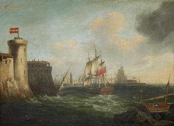 | Keywords: John Thomas Serres - Vessel entering Livorno (Leghorn) harbour.jpg Artwork Creator John Thomas Serres 1800 oil canvas cm 91 5 126 object history credit line signed and dated '1800/SERRES' lower right and inscribed 'Livorno' lower left accession number https //www bonhams com/auctions/20765/lot/130/ Bonhams London 24 April 2013 lot 130 PD-old-100 DEFAULTSORT Serres John Thomas; Leghorn 1800; Bonhams 2013 John Thomas Serres 19th-century sailing ships in paintings 1800 paintings Images from Bonhams |