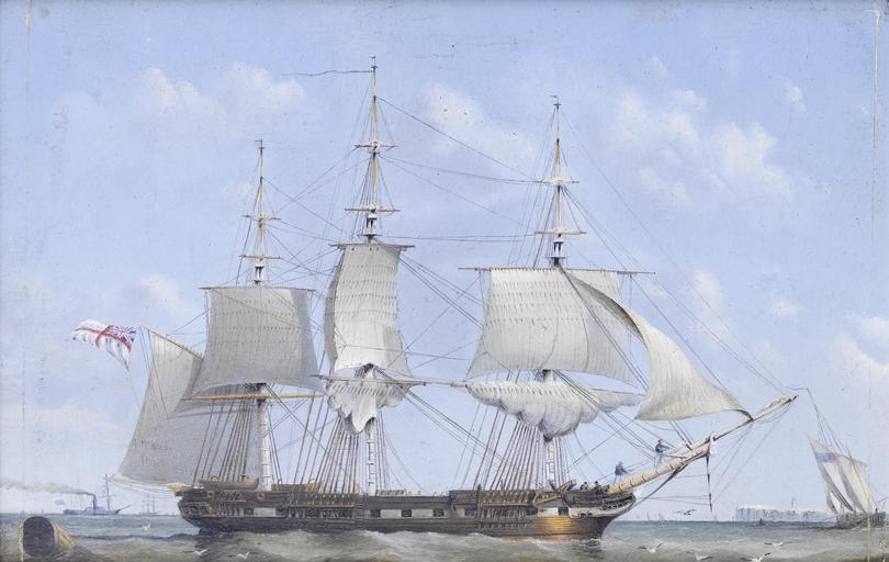 | Keywords: John Ward of Hull - Corvette, 28 guns.jpg John Ward of Hull 1798-1849 other date oil cardboard cm 14 21 6 object history PROVENANCE J R Hall Esq credit line inscribed with title on label on reverse accession number http //www bonhams com/auctions/17843/lot/251/ Bonhams PD-Art-100 John Ward 19th-century sailing ships in paintings Sailing ships of the Royal Navy Images from Bonhams Oil on cardboard 19th-century paintings location missing | ||||