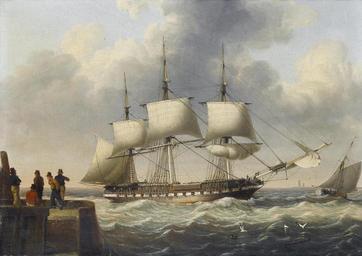 | Keywords: John Ward of Hull - A frigate shortening sail as she runs into port.jpg oil panel cm 22 8 30 5 object history credit line signed 'J Ward' lower left accession number http //www bonhams com/cgi-bin/public sh/WService wslive_pub/pubweb/publicSite r screen lotdetailsNoFlash iSaleNo 14823 iSaleItemNo 3461811 bonhams com PD-Art John Ward 19th-century sailing ships in paintings Images from Bonhams 19th-century paintings location missing | ||||