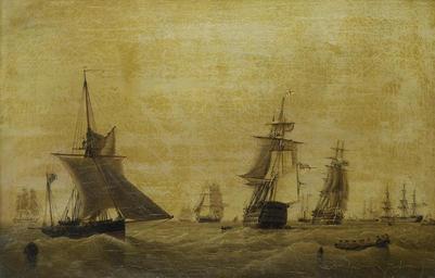 | Keywords: John Ward of Hull - H.M.S. 'Britannia' amidst other ships of the fleet at Spithead.jpg John Ward of Hull 1798-1849 other date oil canvas cm 33 51 8 object history credit line signed 'J Ward' lower right inscribed 'No 1' on stretcher accession number http //www bonhams com/auctions/14217/lot/88/ Bonhams PD-Art-100 John Ward HMS Britannia ship 1820 19th-century sailing ships in paintings Images from Bonhams Paintings with signatures lower right 19th-century paintings location missing 19th-century oil on canvas paintings |